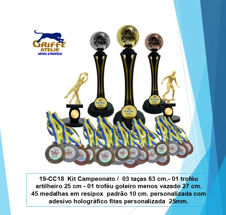 19-CC18 Kit Campeonato / 03 taças 63 cm.- 01 troféu artilheiro 25 cm –