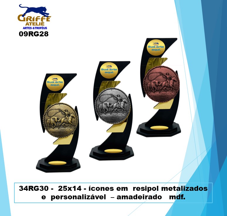 34RG30 -Troféu para Rodeio 25×14 – ícones em resipol metalizados e personalizável – amadeirado mdf.