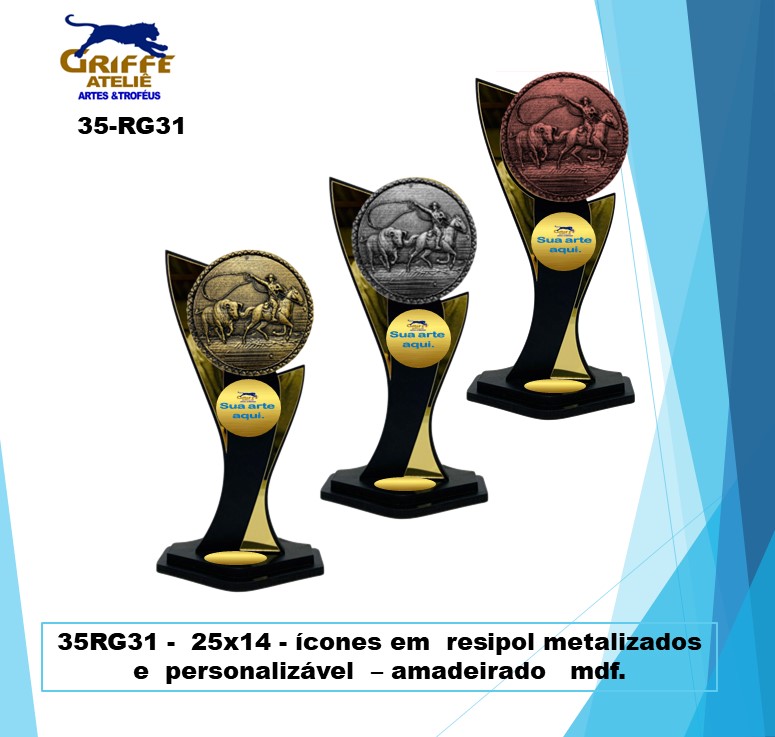35RG31 – 25×14 – Troféu para Rodeio ícones em resipol metalizados e