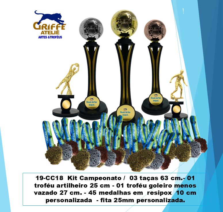 19-CC22 Kit troféus p/ de futebol Campeonato / 03 taças 63 cm.- 01 troféu