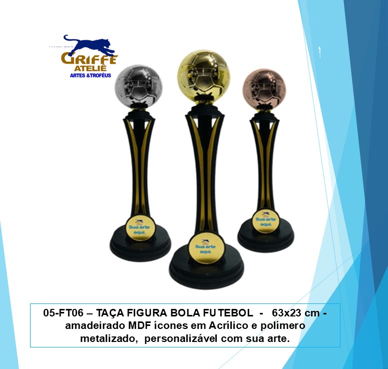 05-FT06 – TAÇA FIGURA BOLA FUTEBOL – 63×23 cm – amadeirado MDF