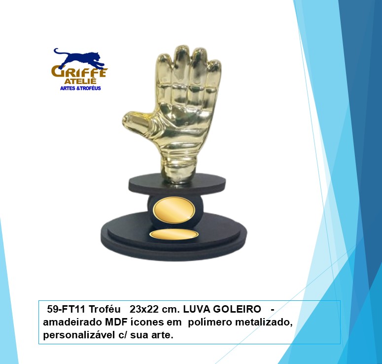 59-FT11 Troféu Melhor Goleiro 23×22 cm.LUVA GOLEIRO –