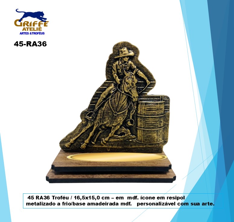 45 RA36 Troféu p/ prova de 3 tambores /16,5×15,0 cm – em mdf. ícone em
