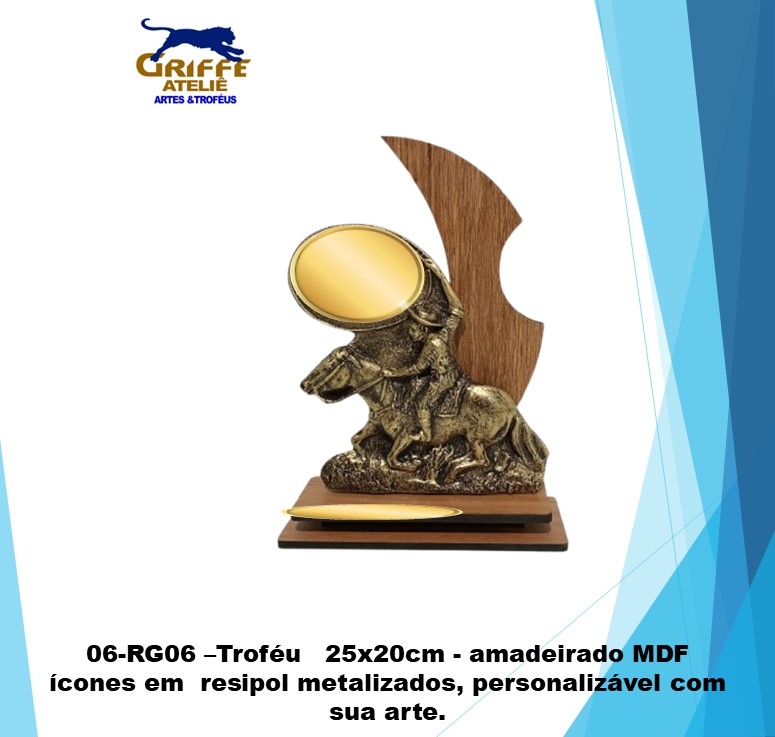 06-RG06 –Troféu p/ Rodeio Gaúcho 25x20cm – amadeirado